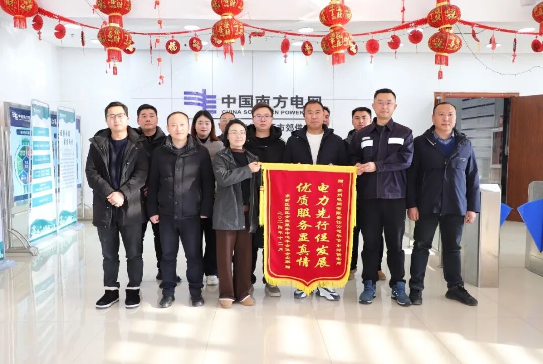 12月31日,岁末。毕节高新区园区企业服务中心及全体企业家共同向中国南方电网贵州电网毕节市郊供电局、金海湖新区供电所和海子街供电所赠送了锦旗,锦旗上分别印有“电力先行促发展 优质服务显真情”“高效为企办实事 供电服务增动力”等字样,以表达对供电部门长期以来为企业提供稳定电力供应和优质服务的深深感谢。