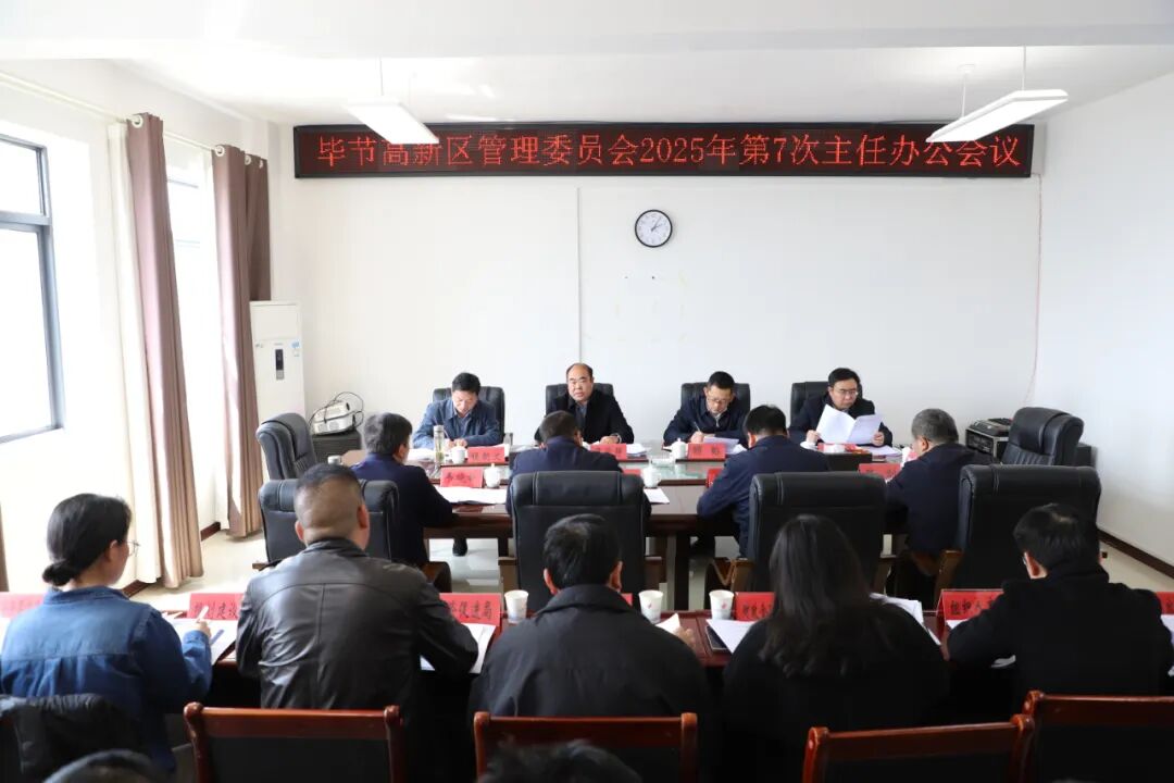 4月3日,毕节高新区管委会2025年第7次主任办公会召开,学习贯彻3月31日中共中央政治局会议精神,习近平总书记近期重要讲话精神,贯彻落实习近平总书记关于安全生产重要论述,听取近期安全生产工作及一季度经济运行情况汇报,安排部署相关工作。党工委副书记、管委会主任吴学静主持会议并讲话,高新区有关领导参加会议。