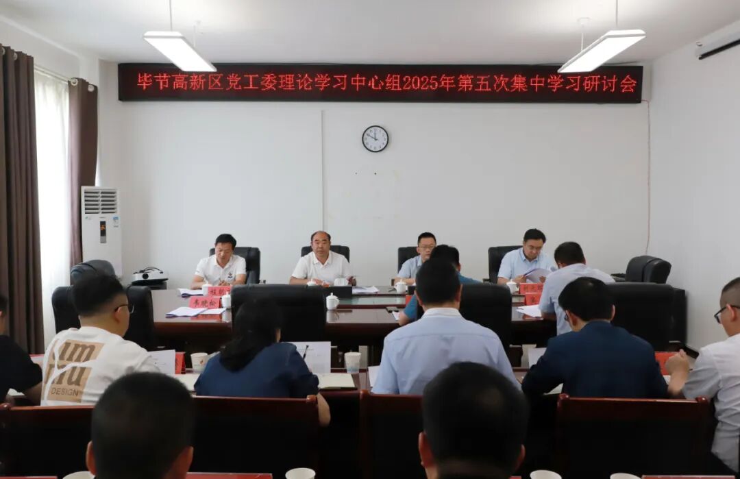 6月24日,毕节高新区党工委理论学习中心组召开2025年第五次集中学习研讨会。党工委副书记、管委会主任吴学静主持会议并作总结讲话。党工委、管委会班子成员及县级领导干部参加。