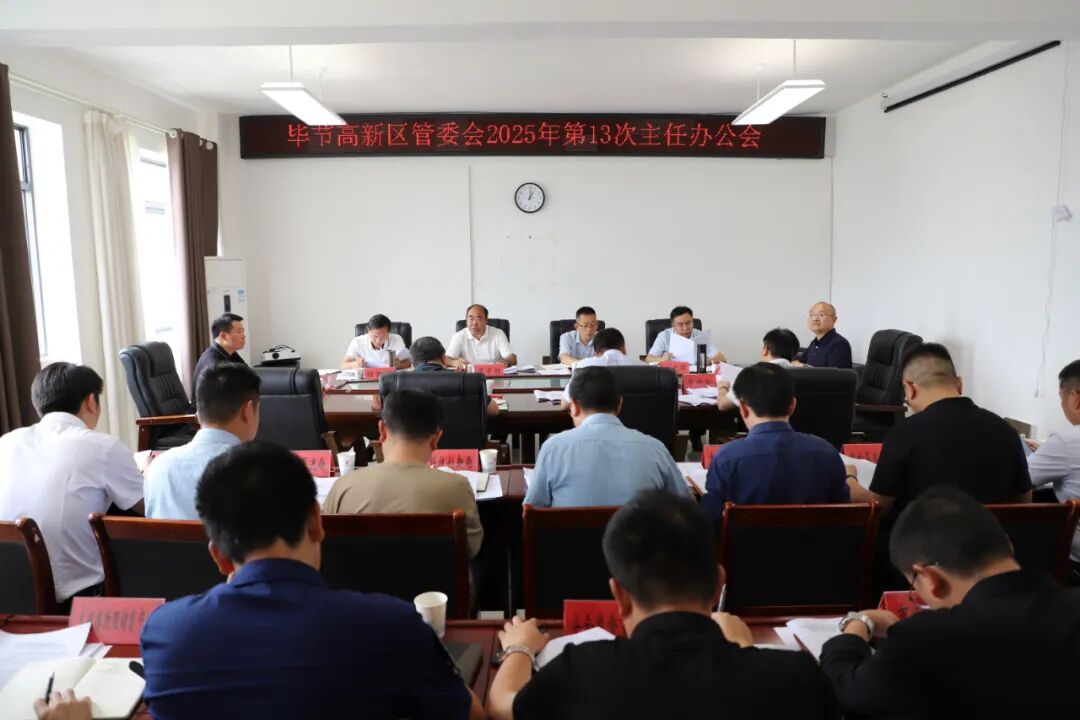 7月23日,毕节高新区管理委员会召开2025年第13次主任办公会,学习贯彻中央城市工作会议精神、习近平总书记近期重要讲话精神、国务院办公厅有关文件精神,学习《中华人民共和国统计法》,听取上半年经济运行、招商引资、项目建设情况汇报,研究部署相关工作。党工委副书记、管委会主任吴学静主持会议并讲话。党工委、管委会班子成员列席或出席会议。