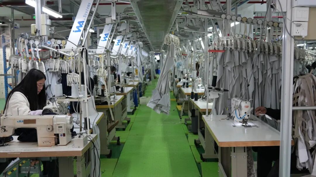 同样的忙碌场景,也在贵州星美服饰有限公司的生产一线上演。裁剪、缝制等工序紧密衔接、高效运转,工人们专注于手中的工作,熟练完成每一个操作环节,车间内处处洋溢着争分夺秒的奋斗气息。