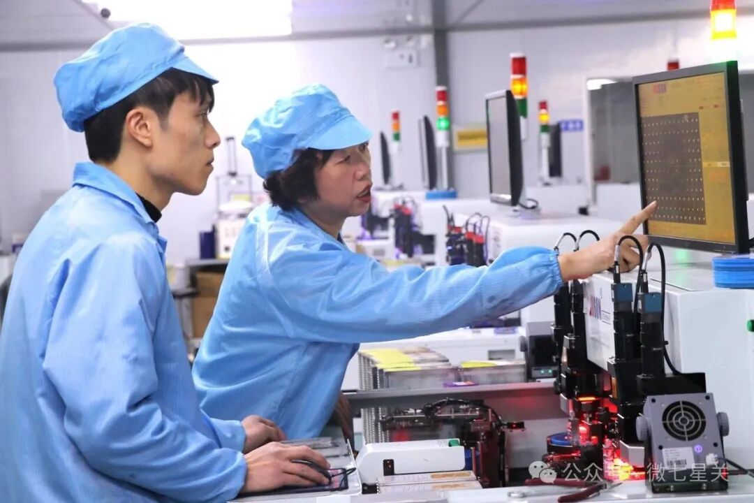 车间里,点胶、固晶、质检
