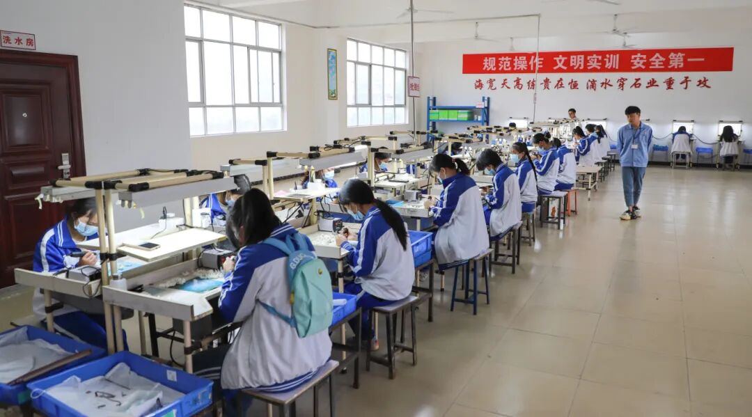 ▲毕节高新区企业与学校建立的订单班学生在实践