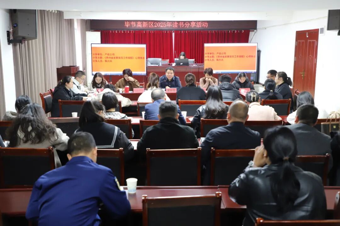 为全面提升干部职工能力素质,丰富精神文化生活,10月31日,毕节高新区举办2025年读书分享活动,各部门(单位)、所属国有企业30余名阅读爱好者齐聚一堂,沉浸在浓浓的书香中,共享一场思想与智慧的碰撞盛宴。党工委委员、组织人事部部长王红晶主持活动并作总结讲话。