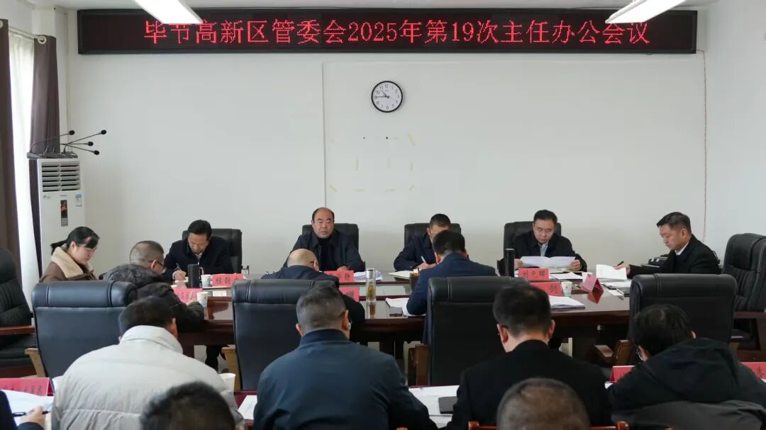 11月26日,毕节高新区管委会召开2025年第19次主任办公会,学习贯彻习近平总书记近期重要讲话重要指示精神,省委十三届八次全会精神,李炳军在主持召开企业家座谈会时的讲话精神,姚轶在毕节高新区宣讲党的二十届四中全会精神并调研时的讲话精神,研究高新区贯彻落实意见。党工委副书记、管委会主任吴学静主持会议并讲话。党工委、管委会班子成员列席或出席会议。