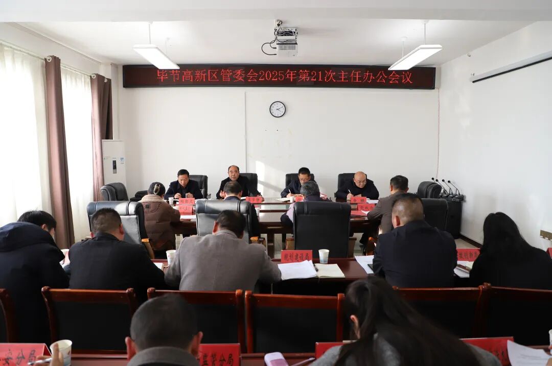 12月22日,毕节高新区管委会召开2025年第21次主任办公会,学习贯彻市三届人民政府第135次常务会议精神,安排部署相关工作。党工委副书记、管委会主任吴学静主持会议并讲话。党工委、管委会班子成员列席或出席会议。