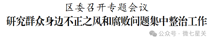 1月4日,区委召开专题会议,传达学习中央、省、市有关会议和文件精神,听取全区群众身边不正之风和腐败问题集中整治工作推进情况汇报,研究部署下步工作。市委常委、区委书记、毕节高新区党工委书记李勰主持会议并讲话。