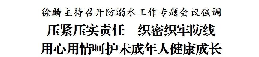 会上,省有关部门作了汇报,参会同志进行了讨论。徐麟指出,防范未成年人溺水工作事关生命安全、家庭幸福、社会安宁,必须从践行人民至上、生命至上理念的政治高度,更加深刻认识防溺水工作的重要性。当前正值暑期,溺水事故进入易发、高发阶段。要围绕看好“水”、守好“人”,一手抓防溺水宣传教育,一手抓水域安全管理和隐患排查,强化力量协同,突出重点人群、重点水域、重点时段加强管护,优化人防、物防、技防等防控手段,以更严要求务实举措做好暑期防溺水各项工作。要严格落实属地管理责任、部门监管责任、水域单位主体责任、家校合作责任,以更实责任全面筑牢未成年人生命安全防护网。要坚持远近结合、疏堵结合,持续提升防溺水工作水平。