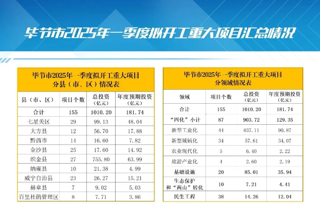 2025年,毕节市将充分发挥重大项目建设对经济社会发展的引领带动作用,以更加饱满的热情和更加昂扬的斗志,大力实施项目攻坚行动、不断优化项目建设环境,全力狠抓项目推进工作,不断推动高质量发展示范区建设取得新成效。